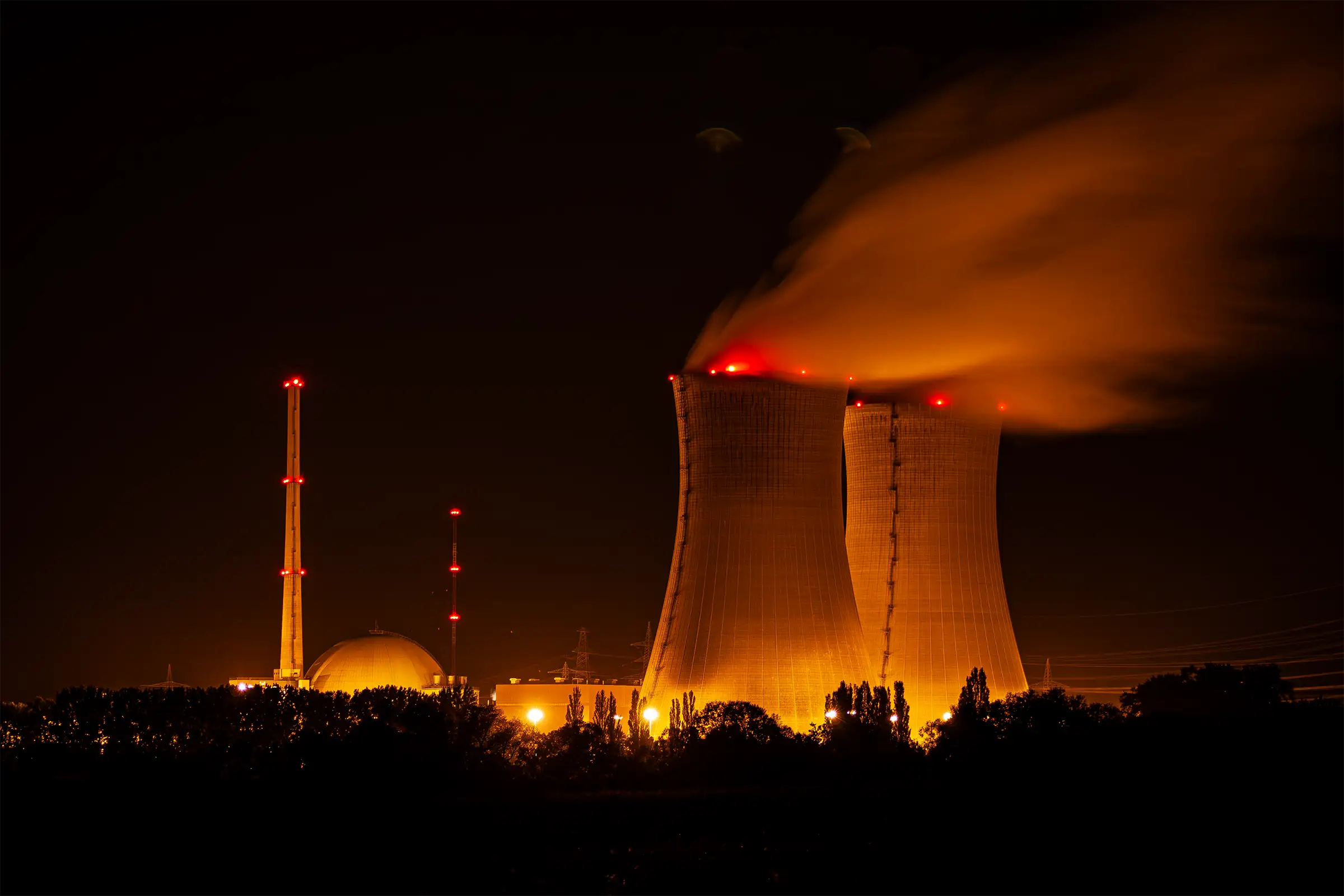 Die beiden Naturzug-Kühltürme des Kernkraftwerks Grafenrheinfeld prägten jahrzehntelang das Landschaftsbild am Main südlich von Schweinfurt. Mit einer Höhe von jeweils 143 Metern waren sie weithin sichtbare Landmarken und gehörten zu den höchsten Kühltürmen Deutschlands.