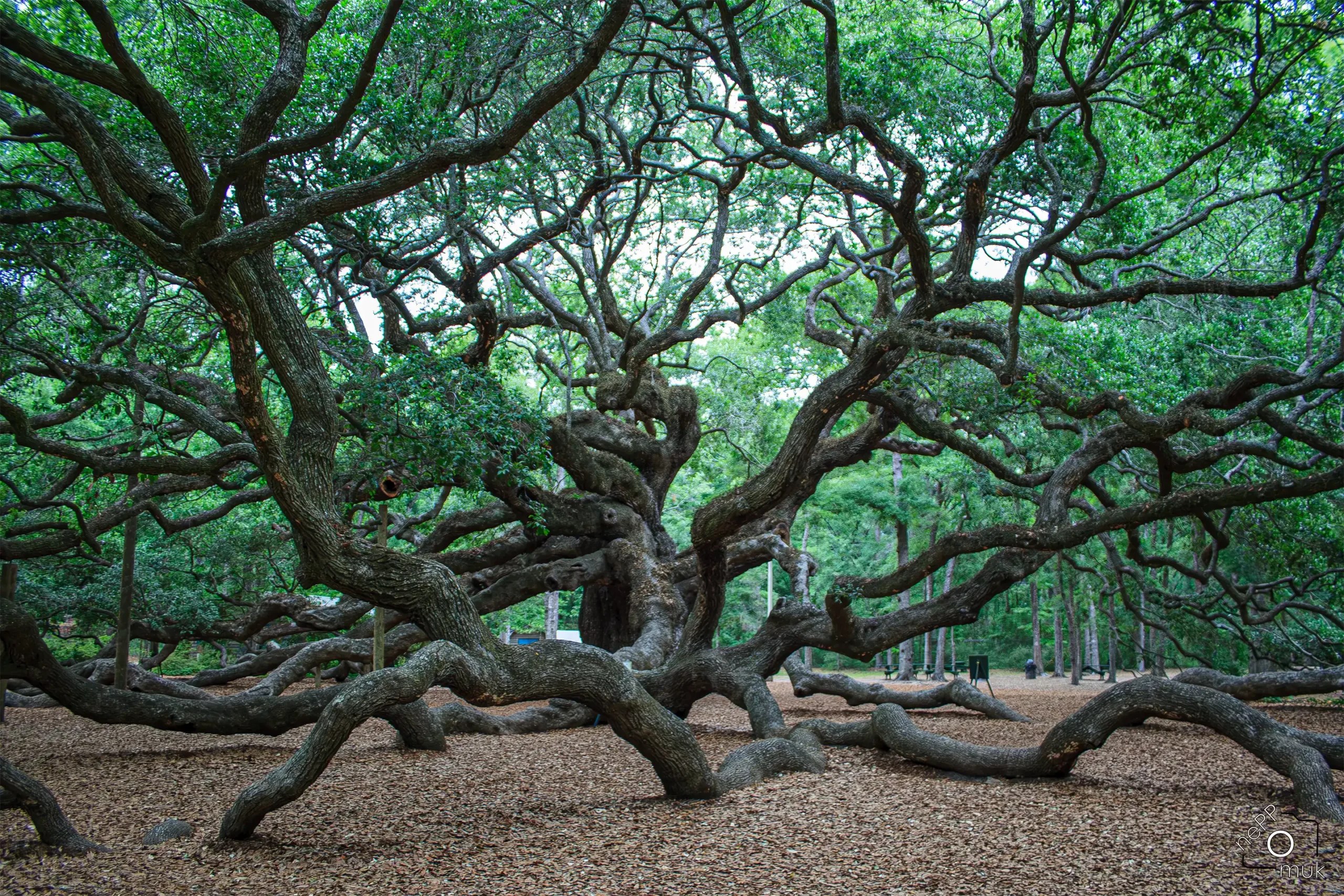 Gerade dadurch entsteht seine Wirkung. Der Angel Oak lässt sich nicht „erschließen“ oder vollständig erfassen. Er bleibt fragmentarisch – ein Geflecht aus Linien, Flächen und Zeitspuren. Wer länger verweilt, merkt schnell, dass dieser Baum weniger ein Motiv ist als ein Zustand: ruhig, unbeirrbar und jenseits menschlicher Maßstäbe.